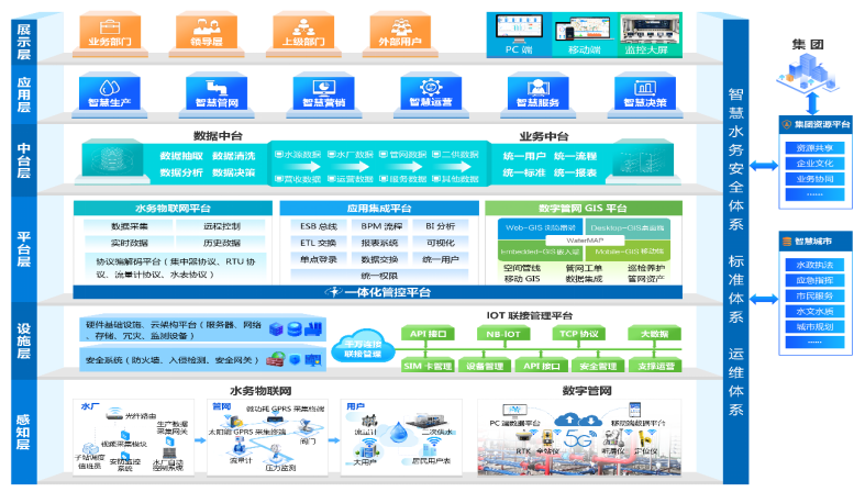 智慧水务统一平台:整个系统的核心,承担着“统一接口标准、整合业务资源、集成应用系统”的重要职责,是整个系统应用的基础。