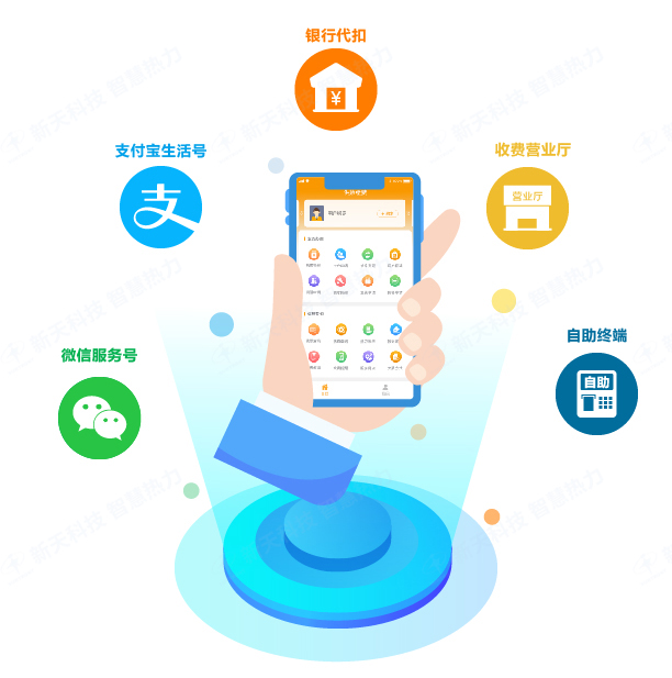 借助"互联网+"等新兴技术,缴费系统实现了各商业银行及微信、支付宝、银联云闪付等主流第三方支付平台的多种渠道代收热费的功能,方便热用户在收费高峰期根据自身实际情况,选择较为方便的便捷缴费渠道,完成缴费业务,极大增强用户服务体验。